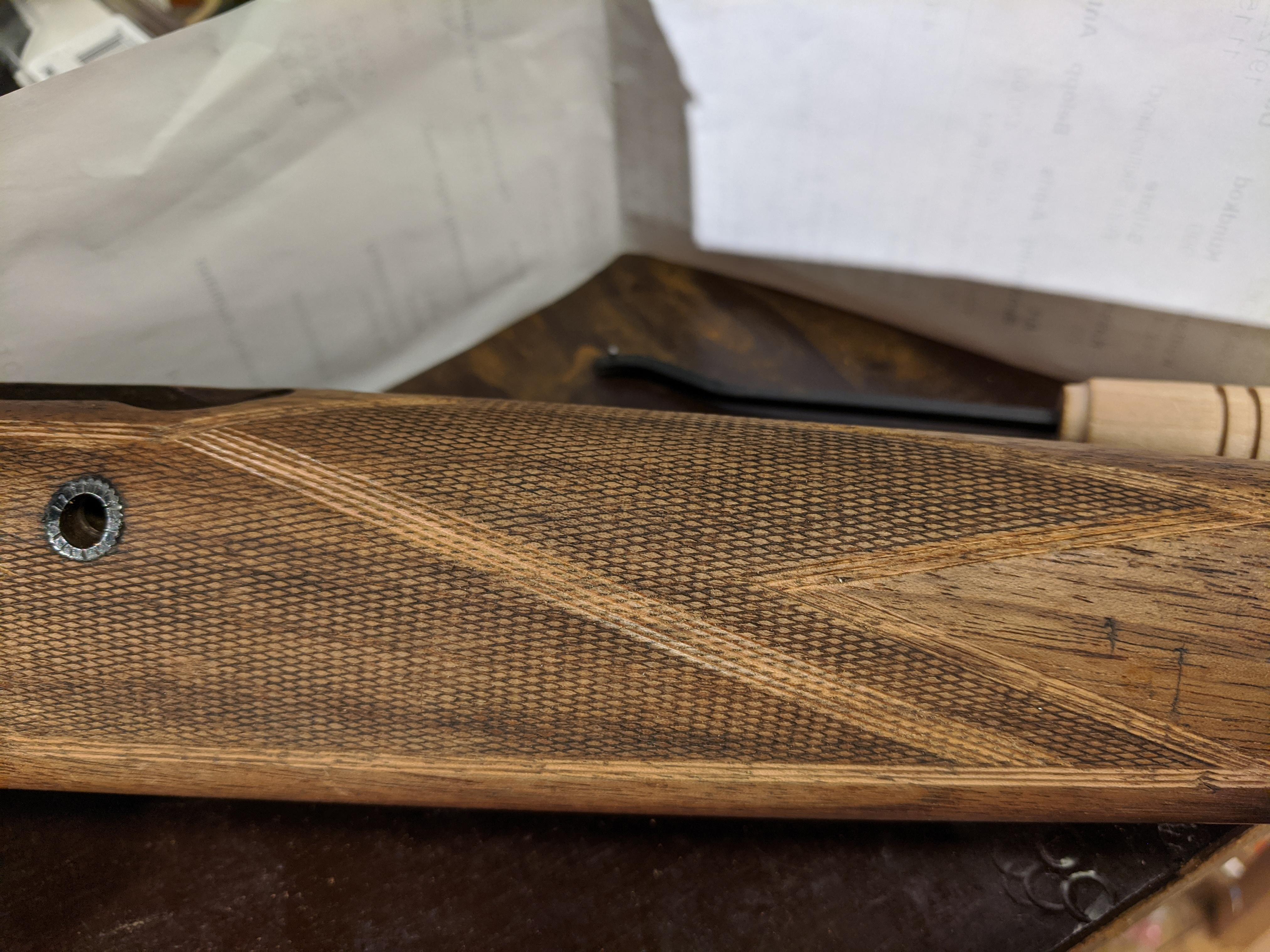 Publicerat December 21, 20196 yr Hämtade hem ett nytt projekt i veckan.(om det här på något sätt känns igen så är det för att jag en hopplös projekterare. Dvs jag tycker det är roligt att köpa slitna saker och renovera. Samt bygga om befintliga ting för att fylla nya roller. Tur att folk är olika, annars hade det inte funnits billiga slitna saker för mig att leka med...) I alla fall, en FN B25 som, om jag läst listorna rätt, är gjord 1960-ish. Rätta mig gärna om jag har fel. 76cm pipor, ventilerad spång,enkeltrycke, ejektorer, pipväljare etc. I mångt och mycket ett "modernt" vapen. Något som jag inte har nyttjat sen jägarexamenskursen, så det ska bli kul att se hur vi trivs tillsammans. Nu till det som jag hade tänkt ordna till: Träbitarna ska få sig en uppfräschning, inga större skador, men blekt och en del märken och fläckar finns. Nätskärningen behöver en övergång den med. Bakkappan, som jag tror är i buffelhorn, är på väg att ge sig. Den har börjat spricka och flaga på sina ställen. Då den har en snygg Browninglogga så tänkte jag försöka rädda den. Skadorna syns nere och till höger. Kornet (som är av fibertyp och således sannolikt eftermonterat) är skadat och insatsen är på väg att lämna festen, så något helt ska dit. Här är nog den största utmaningen vad som ska dit, inte hur det görs, då det bara är gängat i spången. Sen så sitter det rembyglar på bössan. Jag är inte helt ening med vissa angående dess existensberättigande, dessutom så ser lödningen lite halvdan ut. (Det har flutit ut lite väl mycket) Så jag misstänker att dessa är eftermonterade. Ska försöka få bort dessa på något sätt, men det är ju inte bara att tända gasbrännaren och köra på... Fästet på kolven är det ju bara att plugga och göra fint. Utöver detta så hänger det ena slagstiftet ut lite efter avfyrning, kan bara vara skit för det finns det en del av, så rengöring är på sin plats till att börja med. Automatsäkring finns inte eller så har den gett upp andan eller kopplats ur, får se om jag tar tag i det eller bara accepterar situationen. Blåneringen är lite sliten på sina ställen, får se om den får vara eller om jag ger den en ny omgång. Chokerna är stämplade med * på bägge piporna, och en snabb mätning med skjutmåttet indikerar att det stämmer med full i bägge piporna. En provskjutning vid tillfälle får bekräfta om det är så. I såna fall så är det nog läge att ta upp lite, då jag gärna använder stålplugg till kråkor och sånt. Fortsättning följer, antagligen efter julhelgen.