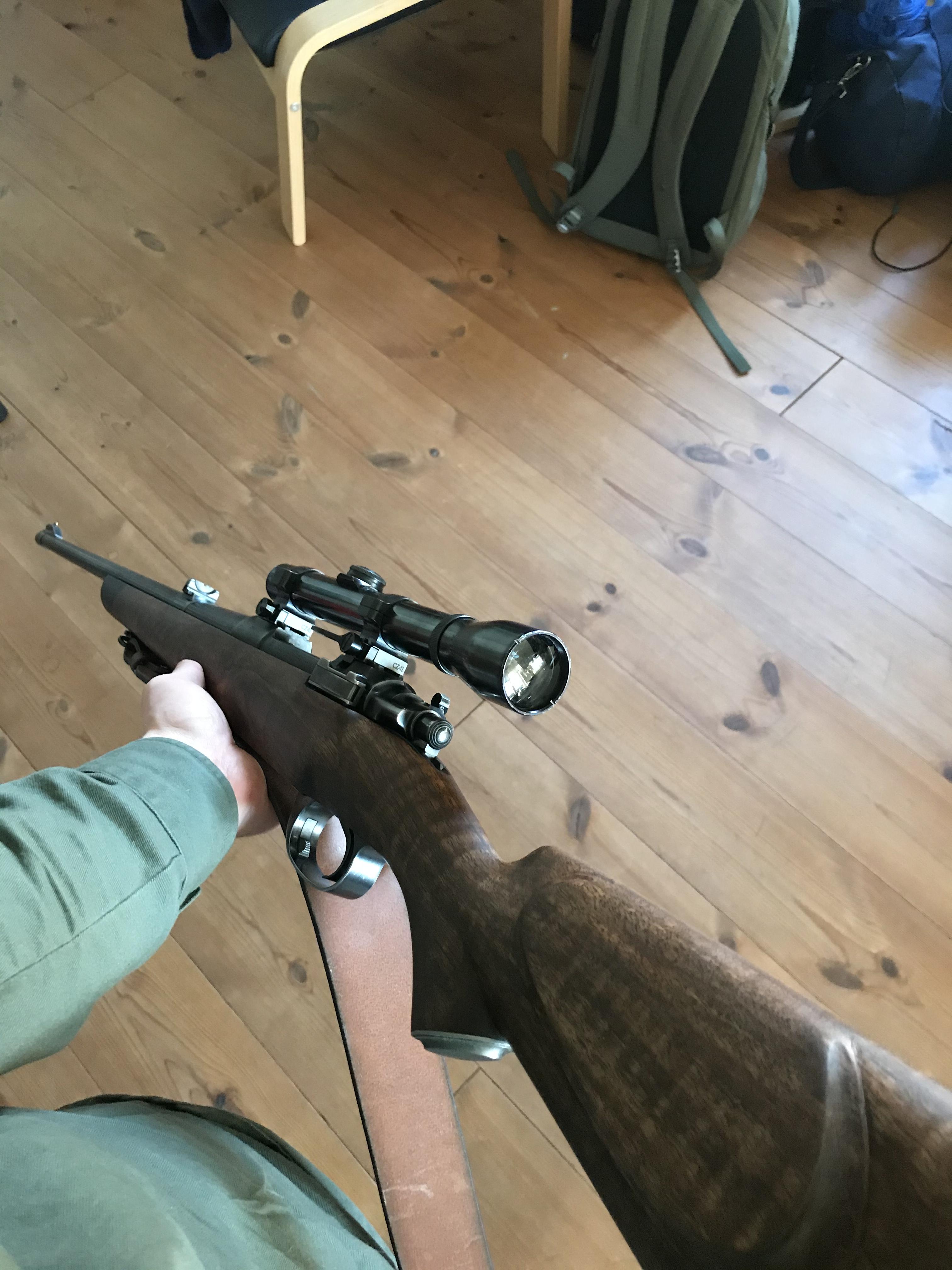 Publicerat Maj 22, 20205 yr Författare Detta är en populär post. Igår var det provskjutning och inskjutning. Kändes otroligt bra att skjuta med, nya kolven och bakkappan har gjort en studsare som inte var otrevlig original att bli ännu bättre. Farsan gjorde ett kort avbrott i byggarbeten på gården och provade skapelsen också, se film. /L IMG_2103.MOV