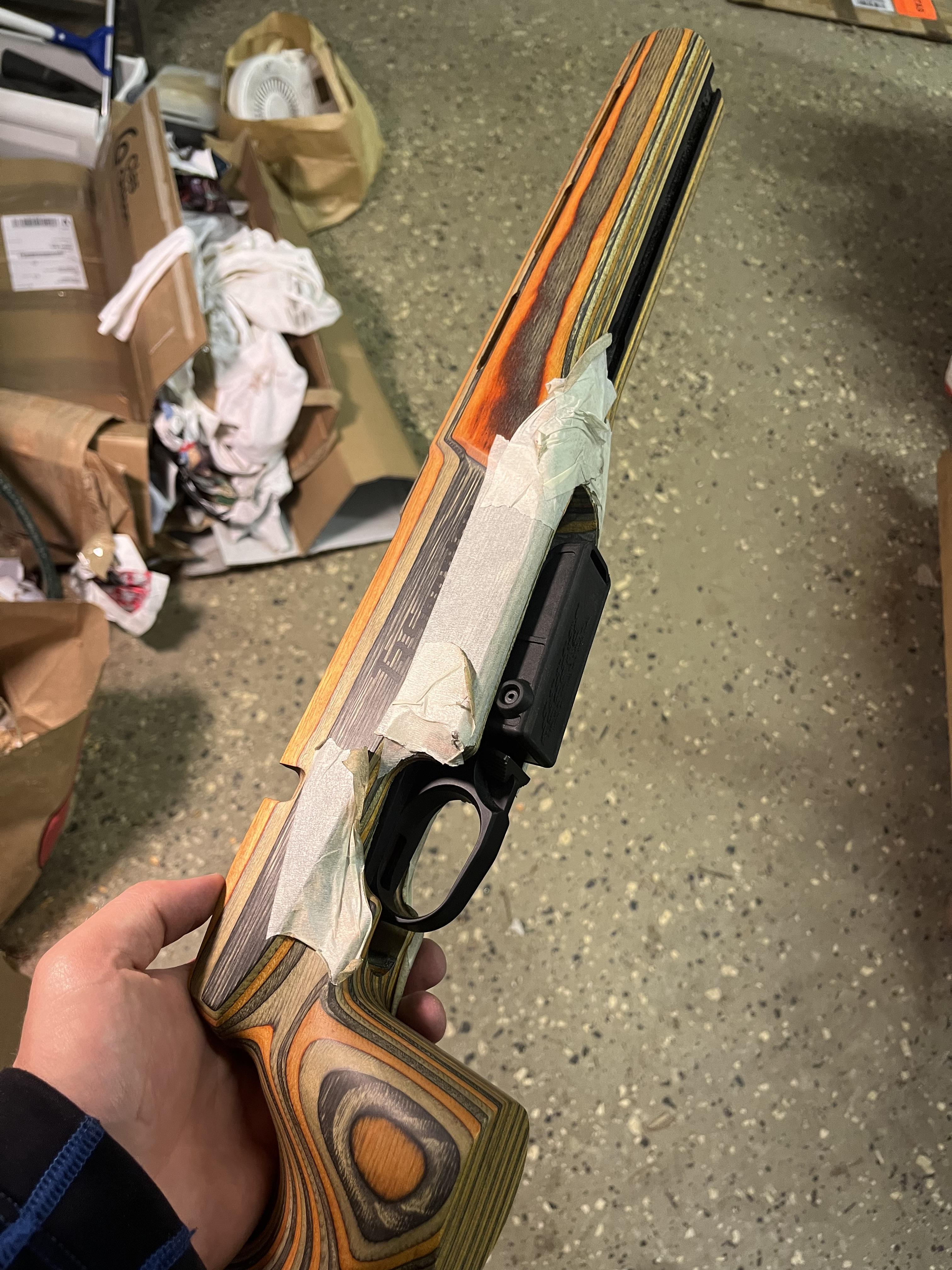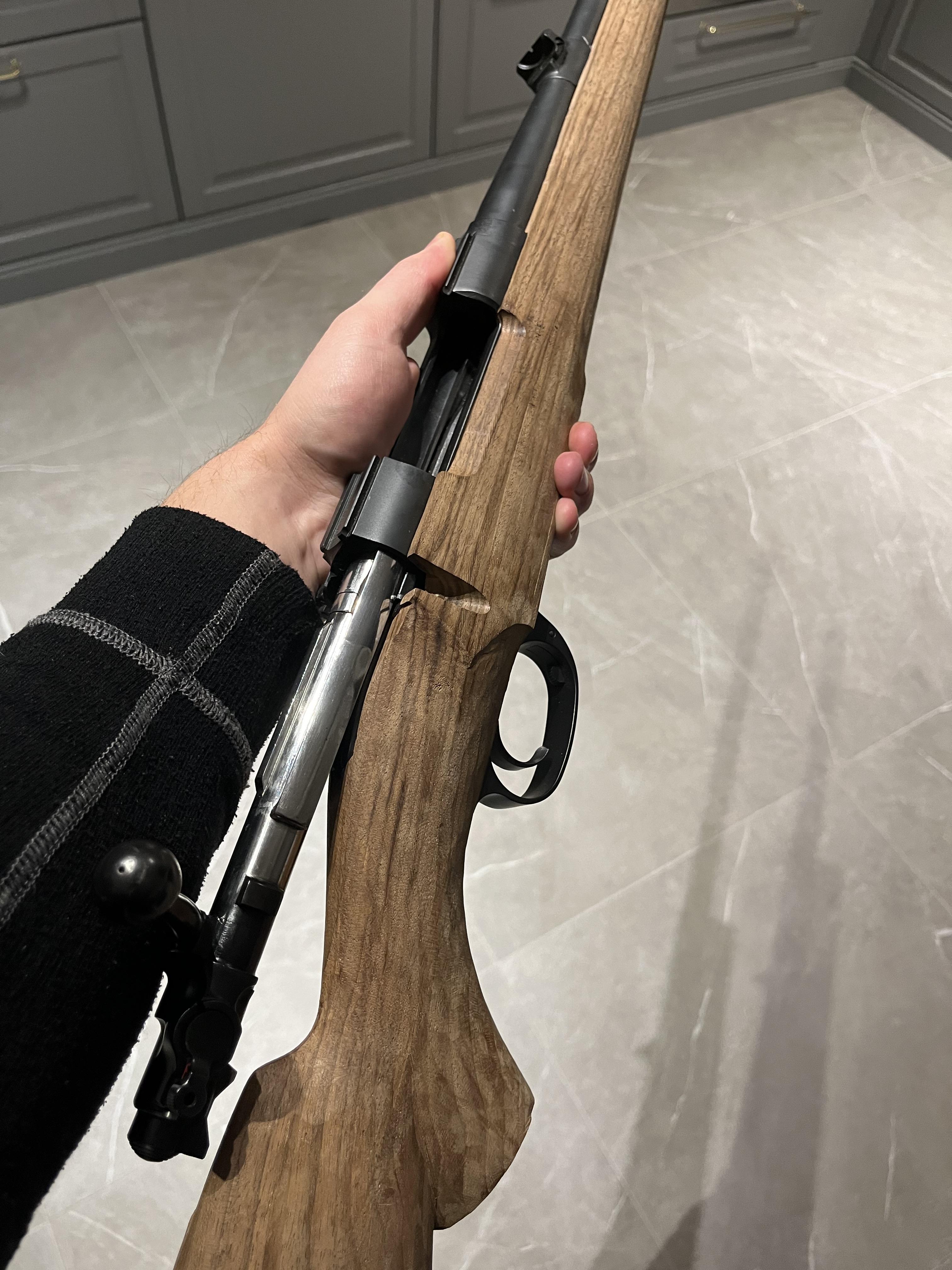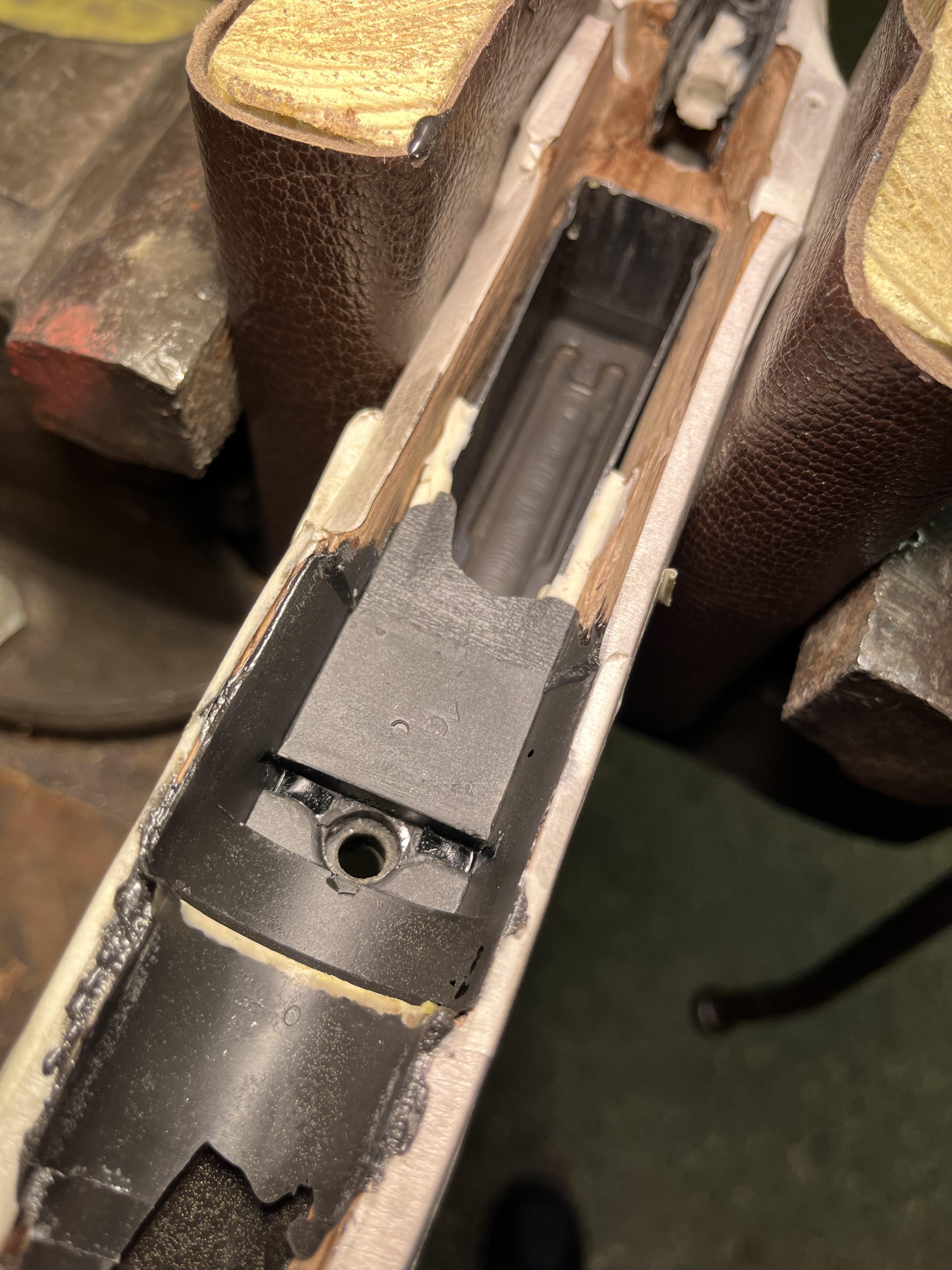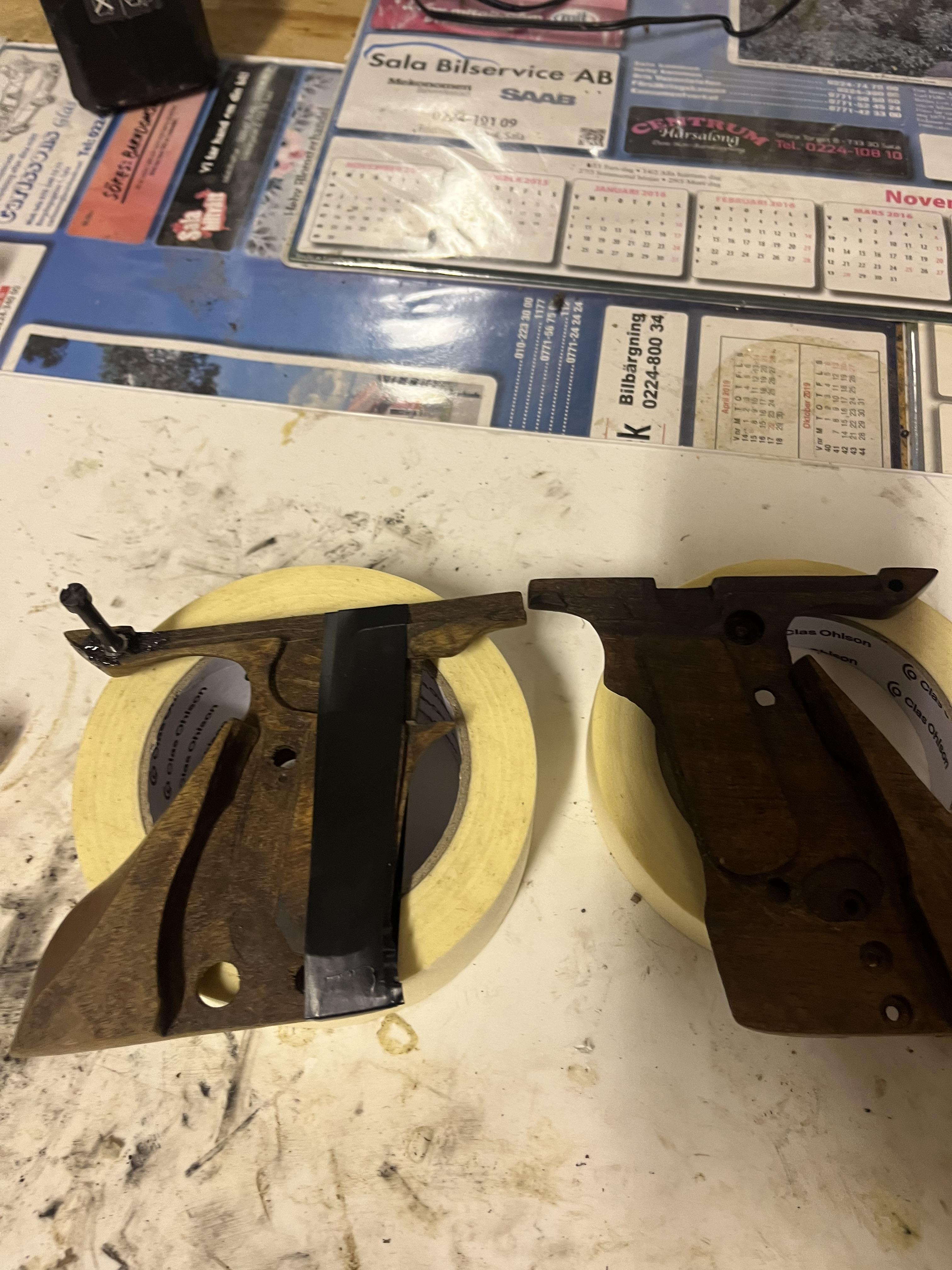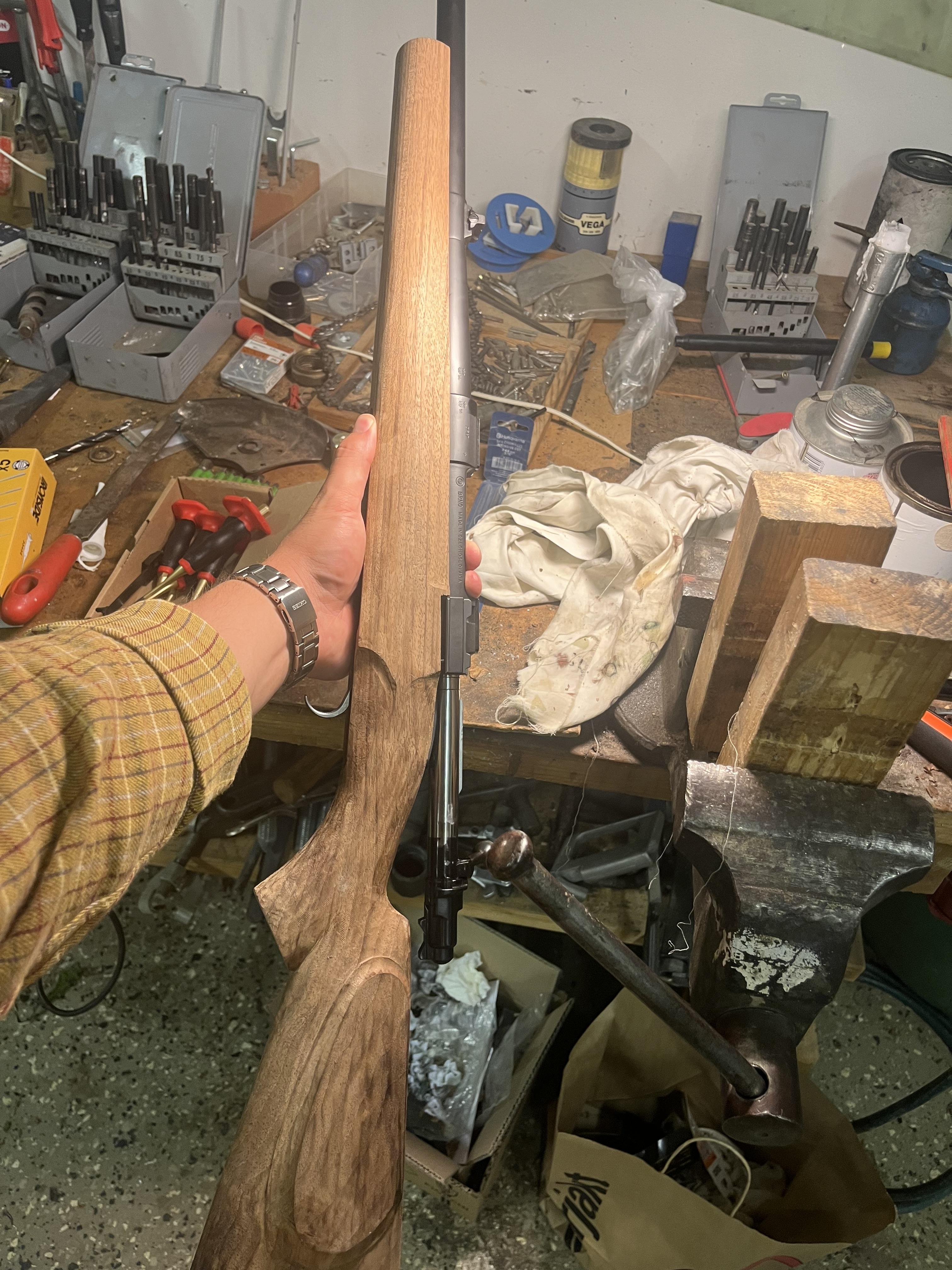 Lite framsteg en sen lördagskväll! Nu gör det att sätta ihop den, men ska putsa lite mer så den har lite mer utrymme och ta upp pipkanalen lite mer. Det återstår att ta ut för slutstycket så det går att fälla ned utan att det tar i kolven vid rekyl.