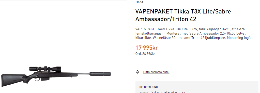 Publicerat Mars 24, 20206 yr Detta är en populär post. Leta efter en beggad T3:a till att börja med. Tröttar du på den framöver, så är det lätt att få igen skapligt av "investeringen". Paket är skit, framförallt när det finns kunskap här om hur du kan kitta upp den med kikare, fästen, dämp osv.. Och då ta det stegvis och förmodligen få bättre grejor för samma pengar.. T3 eller T3x är spelar ingen roll. Jag köpte en T3x-kolv till min T3:a för en billig peng och fick det brantare pistolgreppet och bredare framgreppet, som jag ville ha...