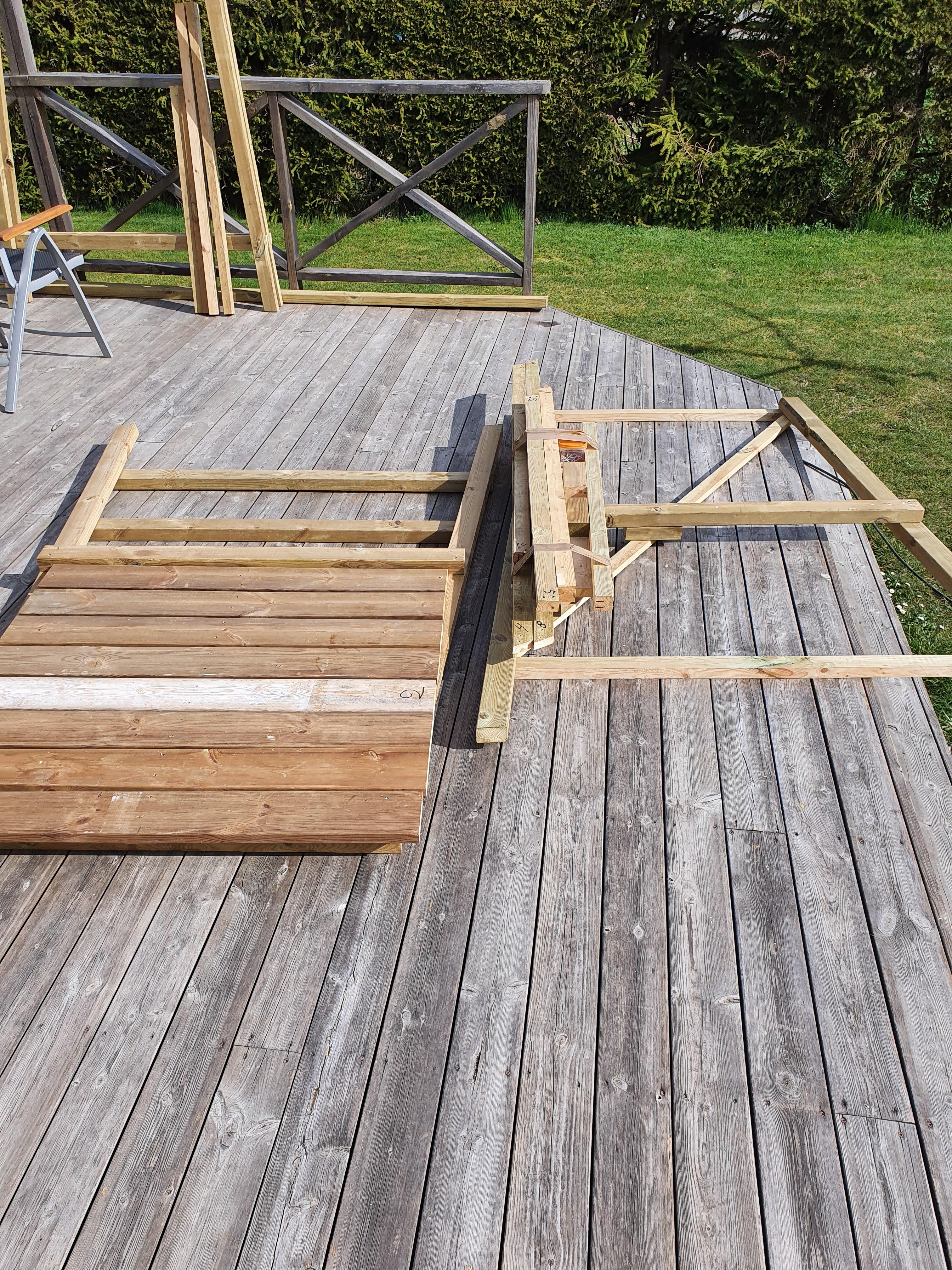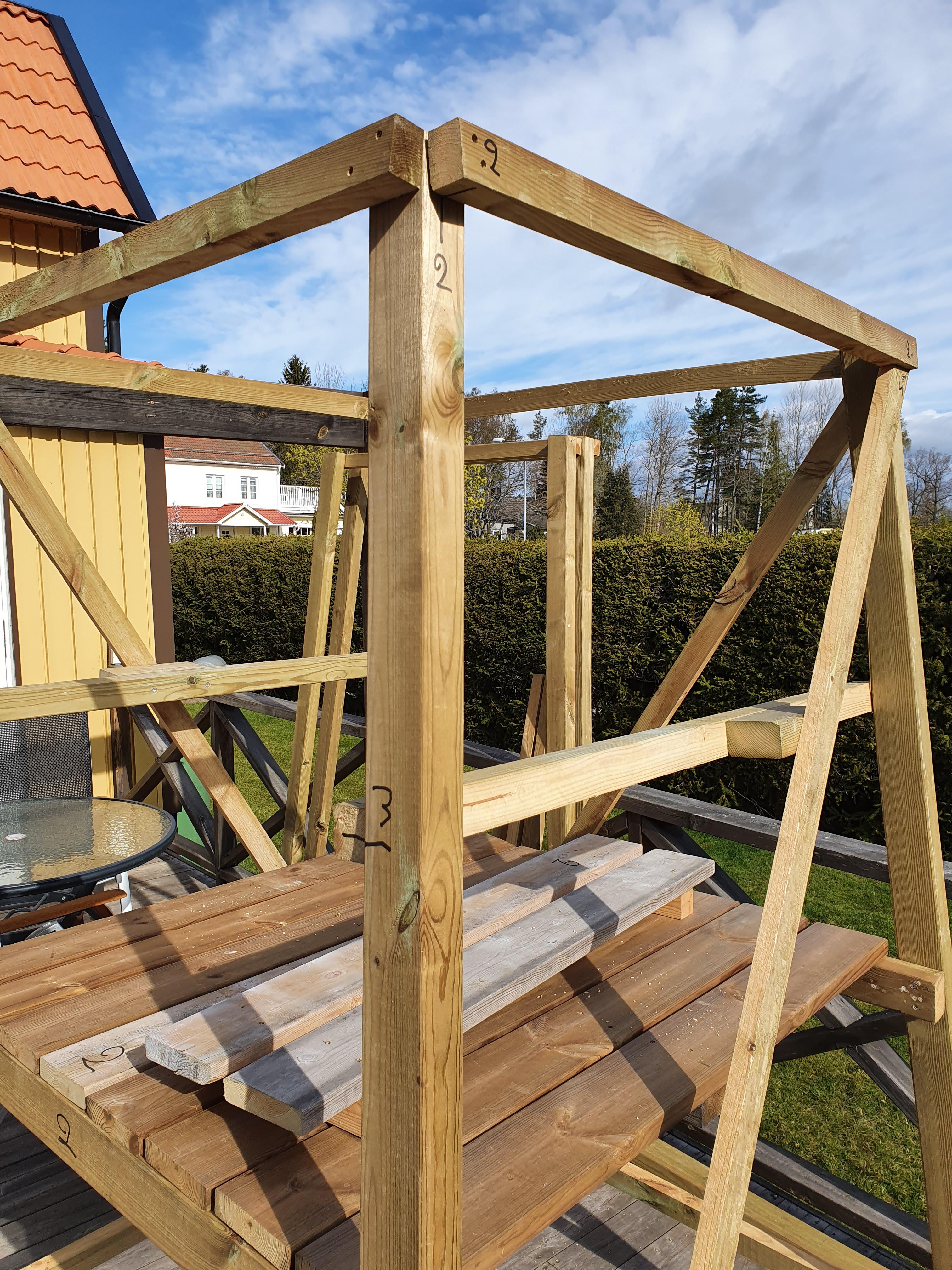 Publicerat Maj 4, 20205 yr Författare Detta är en populär post. Demontering av torn för transport. Börja med att märk upp det som skall plockas bort. jag märker varje del och börjar på 1 och drar ett streck på ena sidan och två streck på andra sidan. Bildexempel räcke märkt 2. Jag lägger tornet ner när jag demonterar det. Sen fäster jag golvet på en gavel. Och sittbrädan med övriga delar och skruvburken tejpade på brädan på den andra. Då klarar man att bära en gavel i taget på två man ganska långt.
