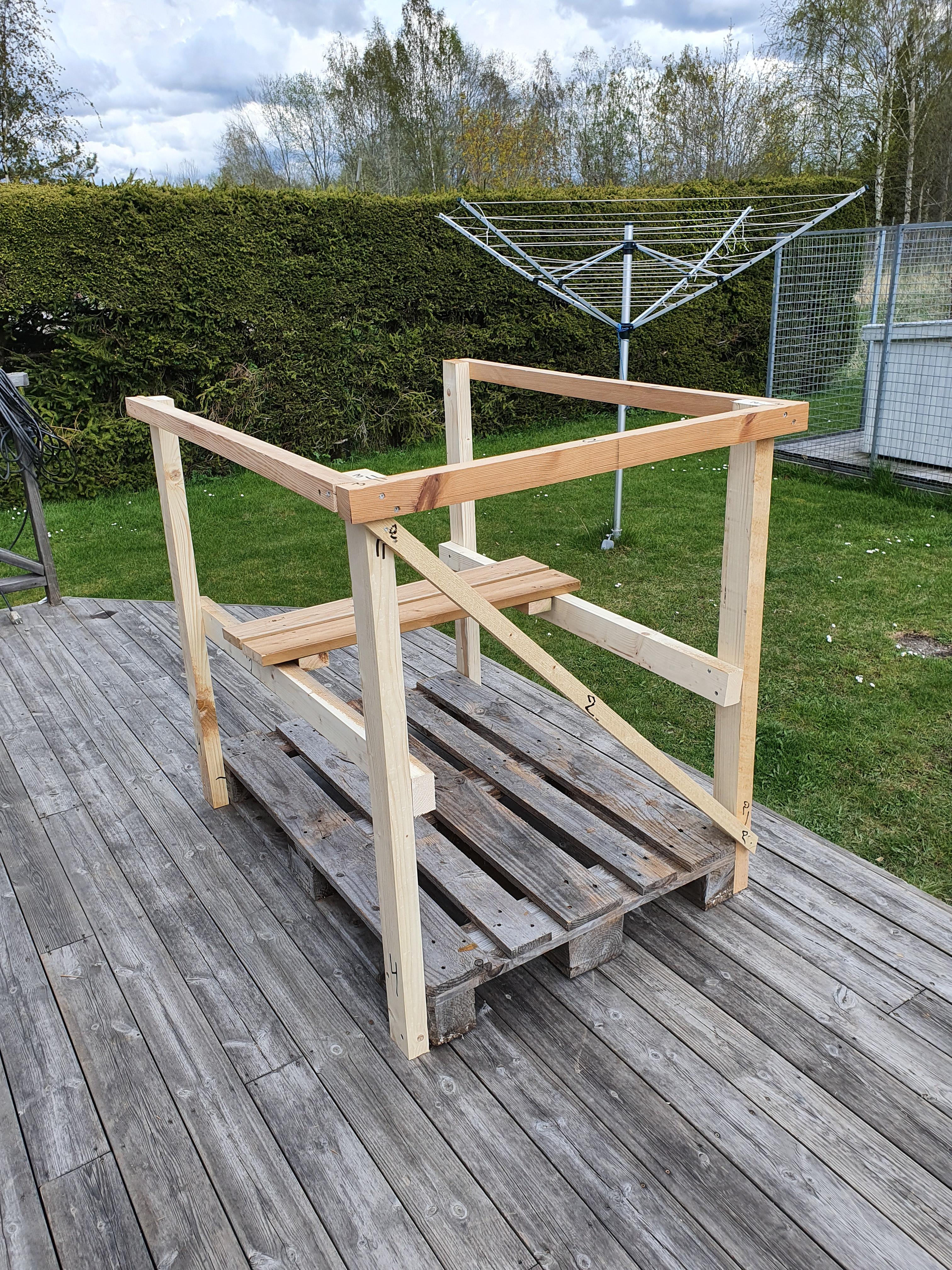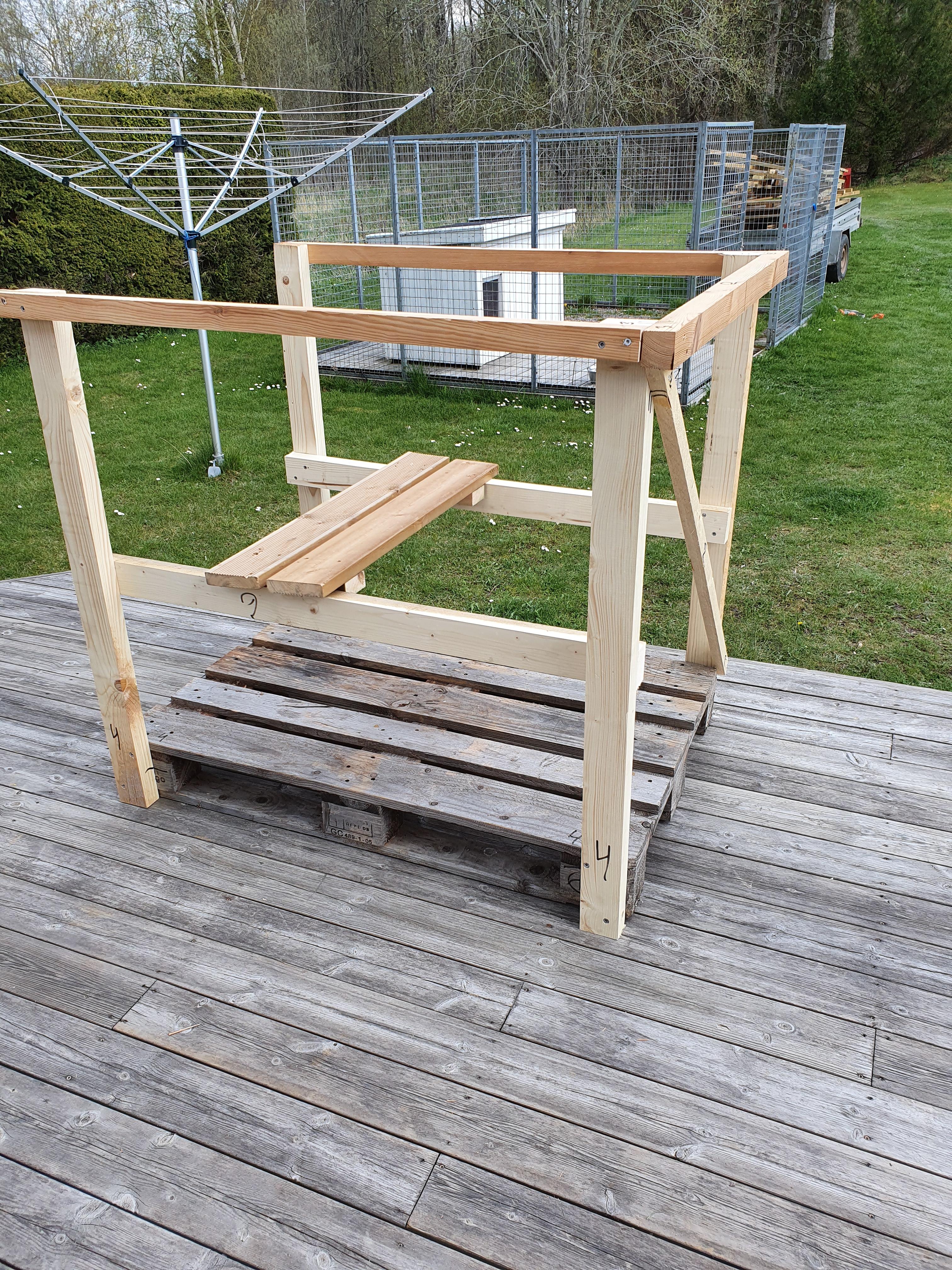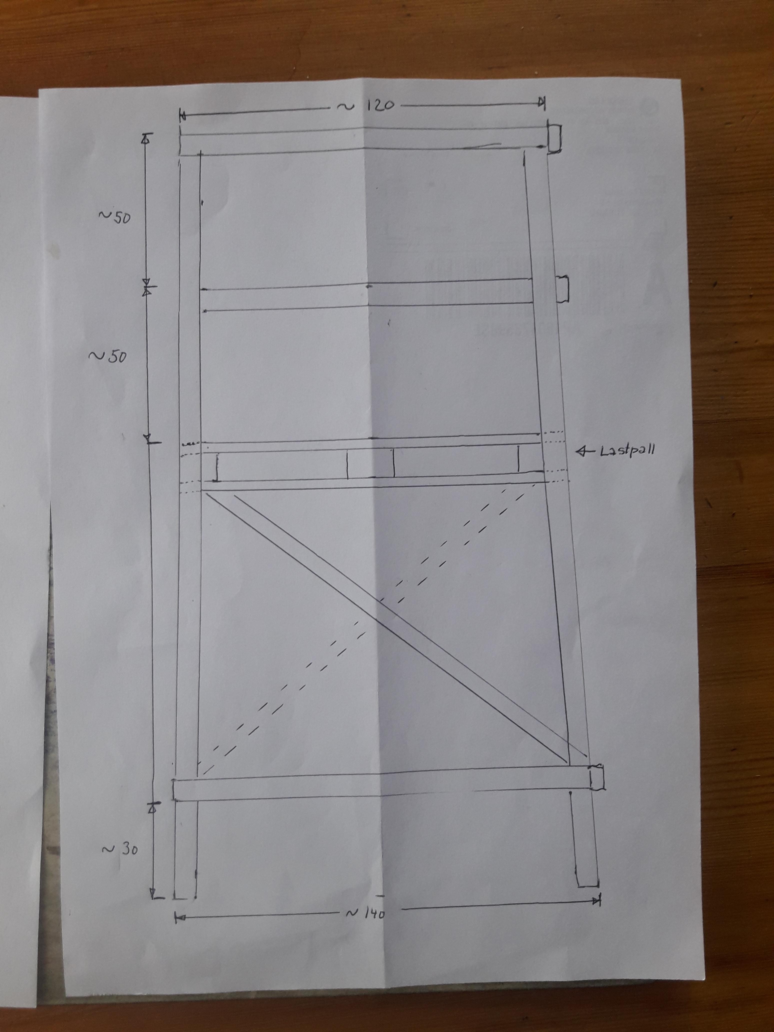 Publicerat Maj 4, 20205 yr Författare Detta är en populär post. Enkel skjutlave på EU-pall, när man inte behöver komma upp från marken men vill ha tillgång till stöd vid skytte och dessutom får en tydlig markering om var passet är. Det som behövs är en EU-pall, Fyra 45X75 110 cm långa, Två 45X75 ca 118cm långa. Lämpligt material till räcket, två 118 cm långa och en ca 90 cm. en måttanpassad snesträva i framkant är bra. Sen en sittbräda enligt princip i föregående inlägg. Skruva fast dom 110 cm långa 45X75 i hörnen på pallen på långsidorna, mät upp 43 cm från pallen och markera för reglarna för sittbrädan (tänkt sitthöjd med bräda, 45-46 cm) Montera räcken och snesträva. Klart?