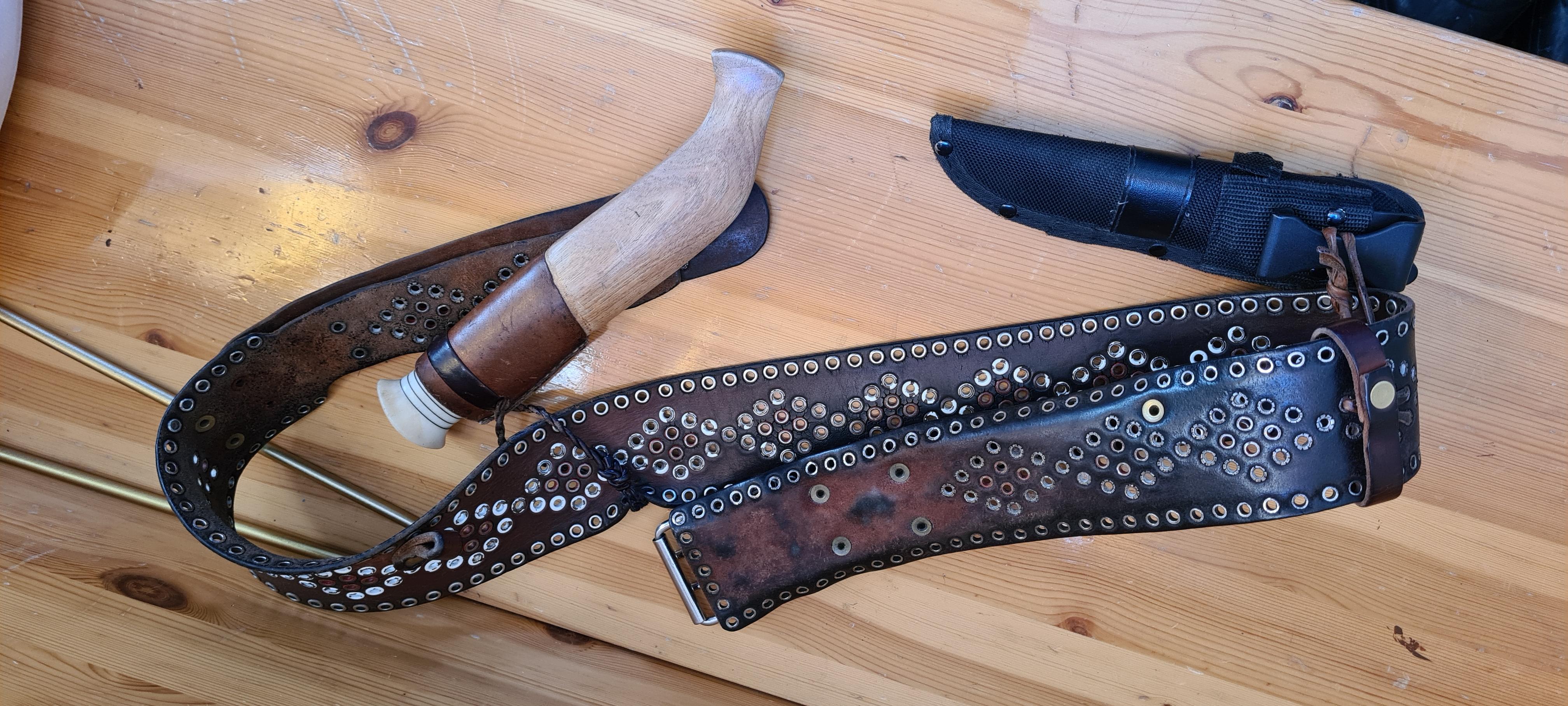 Publicerat April 3, 20215 yr Har ett bälte, extremt likt. Tillverkat i Klimpfjäll av en duktig lokal slöjdare. Vänstra kniven är egentillverkning. Helträslire.