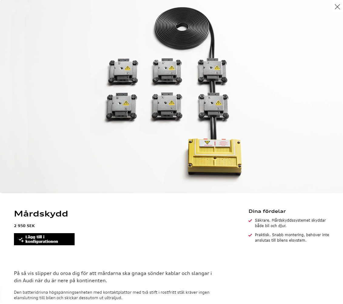 Publicerat Juni 16, 20214 yr Detta är en populär post. Mårdskyddet var ju intressant, men frågan är vad man ska ha Audi:n till. 😀