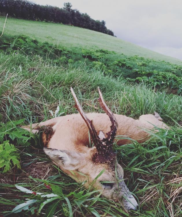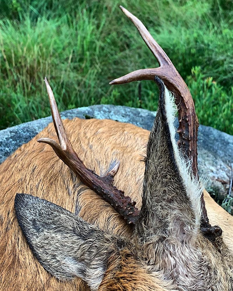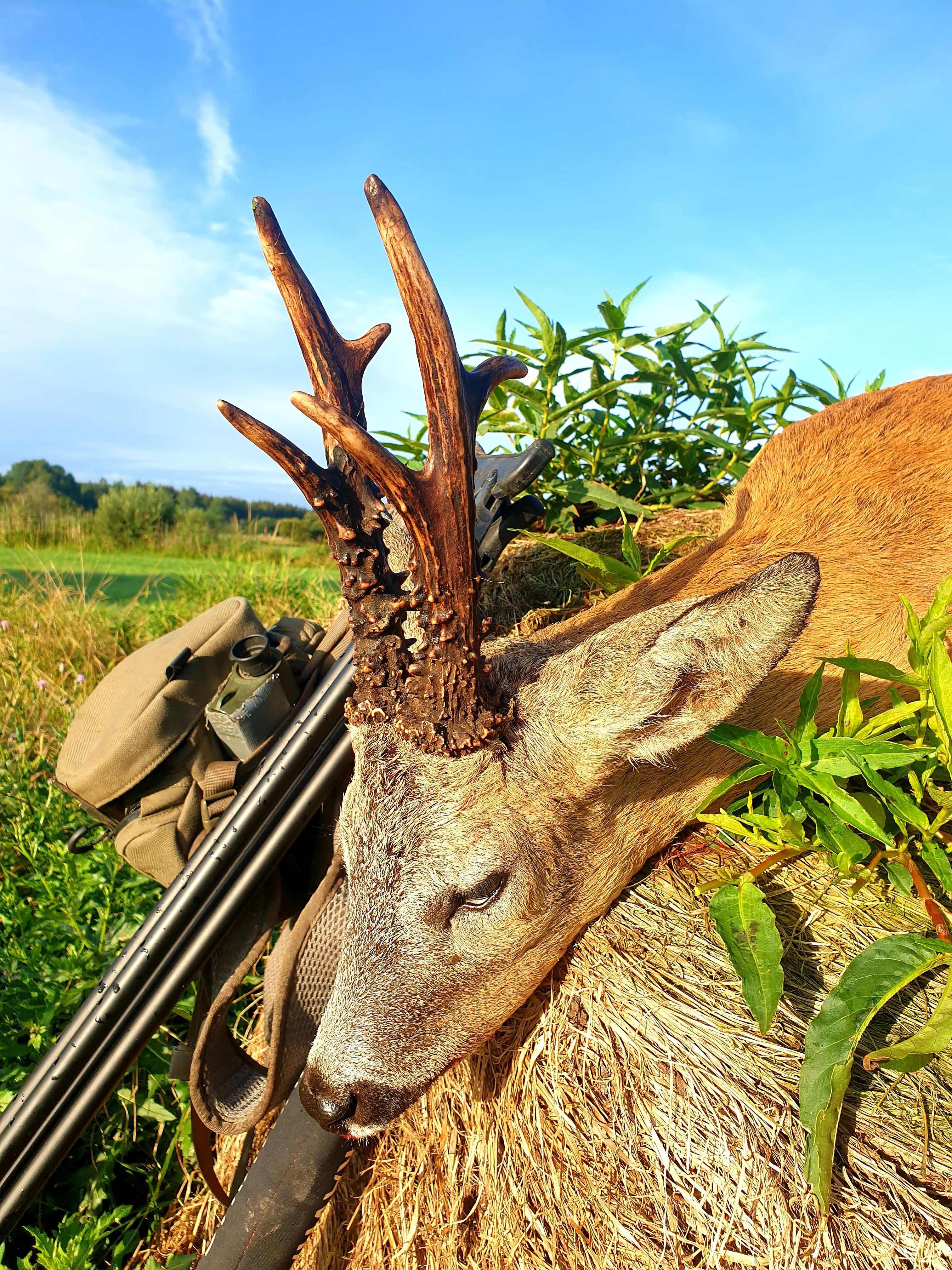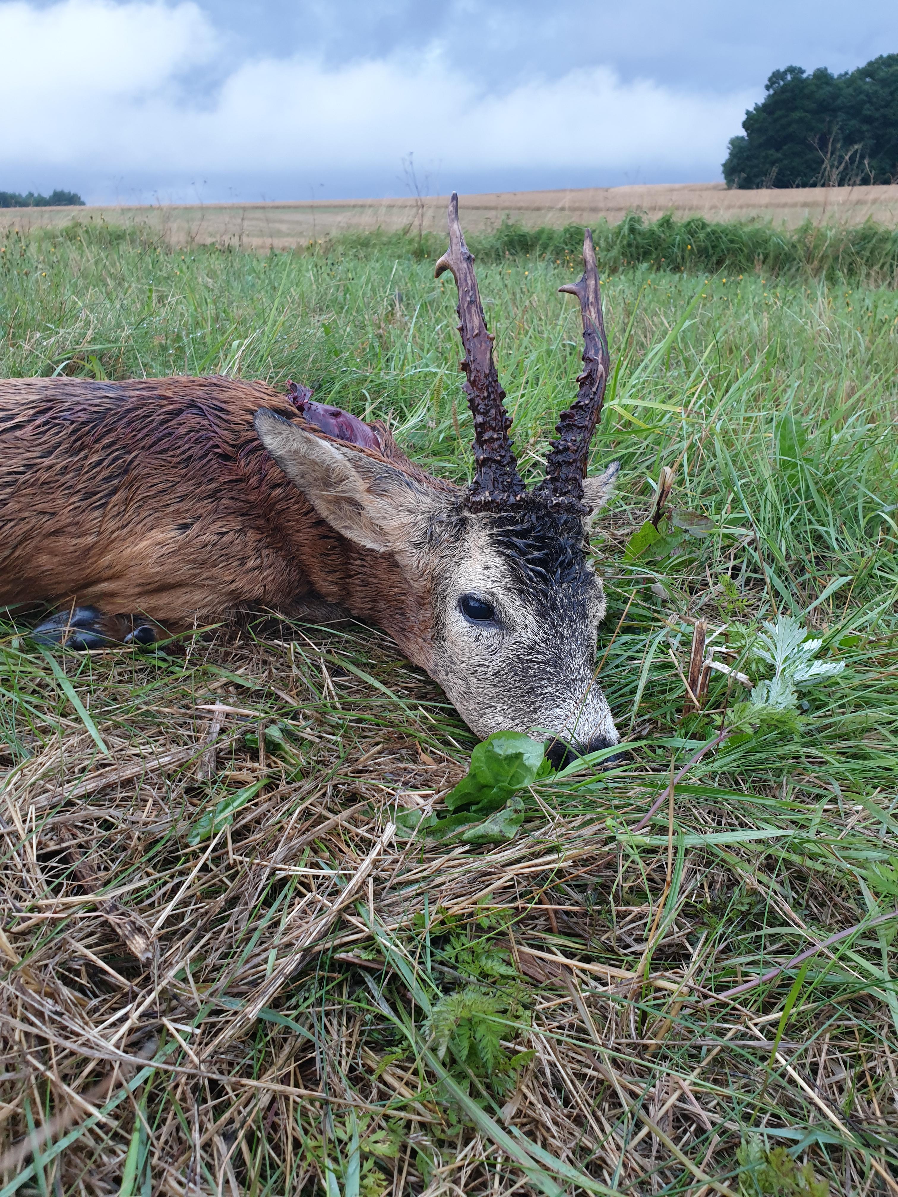 Publicerat Augusti 16, 20214 yr Detta är en populär post. Medans morgonkaffet tillverkas syns nått grått i dimman utanför, räv. Får tag i frugans 222:a på köksbordet och smyger ut. Räven poppar fasaner ut mot kohagen, första vändan hinner jag inte med, anar att det är minst 2 då det poppar upp på olika håll. En yngling flyger in i staketet och en stadig hane på 7.9kg följer efter och dukar under. Går in och intar morgonkaffet tittandes i fönstret, ånyo poppar det kycklingar, greppar 223:an denna gången och smyger ut. Denna hade bättre koll och drar sig undan precis, men kommer nyfiket tillbaka. Försöker få fram den sista biten med pipljud men ack. Följer sedan planen och smyger ut, kommer över första knixen och en get står och glor. Hon har en bock med sig med de har redan anat oråd och schappar, bocken stannar till på 120m men här tas inga skott i hastigheten. Ett annat rå far iväg bakom mig i skogshulten. Drar vidare till ena kornet, precis inne på grannens går en lyckligt ovetandes bock på 60m och betar. Avvaktar och hoppas den ska behaga hoppa iväg 30m till, men nej. Get med kid i kornet, en till synes ensam get betar på nästa gröna fält. Kommer till nästa och där går en liten bock som inte svarar på locket någe alls, kanske för att han har sällskap av get och kid. Kiddet skrämmer nästan slag på stackarn, en cyklist sätter fart på de 3. Genar vidare över ett fiendefält, bakom en buske blänger en bock på 130m, kommer in på 100m då far han iväg med geten sin. Följer på då de hoppar in på rätt ägor, blir liv där bakom slyet då ett par till rå lägger sig i. Passar på att avancera under hetsen, tyvärr hinner de hoppa in betet innan jag kommer fram. Ställer i ordning skjutstödet och drar lite kidläte, plötsligt kommer en handdukshängare farandes från ingenstans, en gammal ensilagebal och ett snår räddar honom precis. Den bättre bocken har under tiden tagit sig in på fältet igen och studerar mig noga, vi kör en staredown i 20min. Försöker under tiden med lite fejning, men ingen respons. Efter mycket om och men vrider den upp bredsidan på 130m, knölar in stödet i busken bredvid för extra stöd och kramar av när det känns bra. Han lyckas hoppa över taggtråden men kommer inte långt och snart står geten och funderar vad han håller på med. Grova och vackert pärlade, bra premiär 🇸🇪🇸🇪🇸🇪