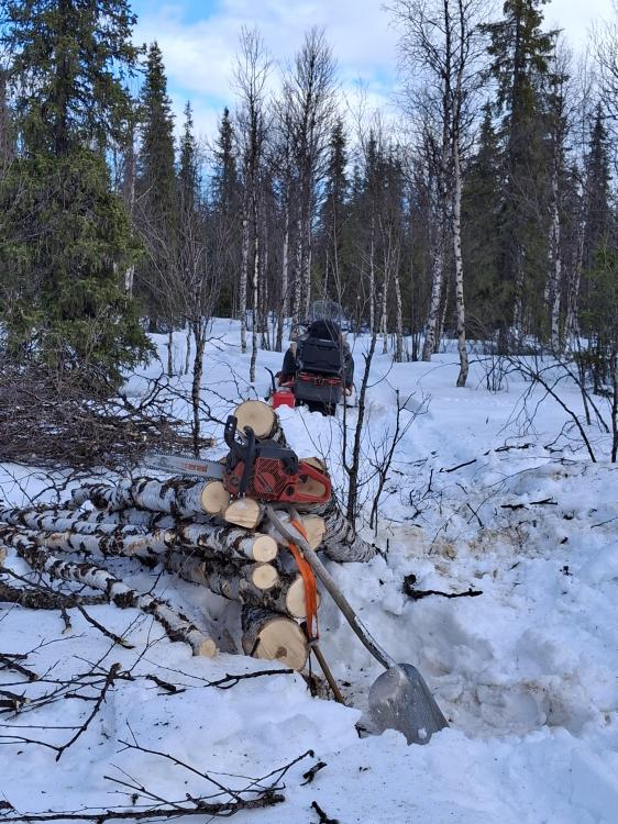Publicerat Februari 18, 20251 yr Ska nog hålla mej borta från detta egentligen men det är ju kul.. oftast. Var ut igår och skulle ta ned ett par aspar på ett kråk-ställe. Den stora lutade åt "fel" håll, ville ha den åt andra hållet. Dessutom vinden åt likaledes fel håll.. Men vafan, kraftigt fällskär så kanske det går ändå? **IDIOTJÄVEL** Drog fast sågen.. Men med en massa handkraft så gick det ändå för fällskäret var så pass rejält så jag klarade att trycka aspen ngt så jag fick loss sågen. Sen fick den gå ned där den ville.. Larsa åker ut med traktor och kran och bärgar till ved idag tror jag..