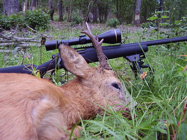 Publicerat Augusti 27, 200718 yr Så var det då premiärjagat med min nya 700 LTR,morgonen började med ett par rejäla utskällningar i dimman så jag beslutade mig för att byta mark. Åkte till en mindre mark om 50ha enbart bestående av välgallrad lövskog, som är helt genomkorsad av traktorvägar.Den brukar kunna avkasta någon bock om året. Efter ca en timmes smygande när jag rundar ett berg så står där bock och smaldjur betandes i grässträngen i en av dessa vägar. Ett frihandsskott på ca 30m och bocken stöp där han stod. Typisk skogsbock för området. Alla som läser detta kan väl skicka en läkande tanke till Mrvince högerhand som blev lite trasig igår,dedicerar den här bocken till honom. /Micke