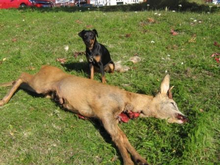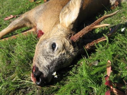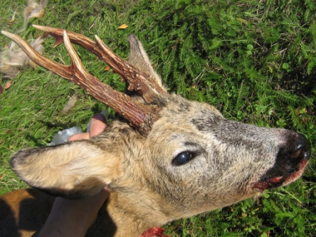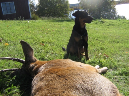 Publicerat September 21, 200718 yr Satt på premiärmorgonen i ett av mina två torn ute hos svärföräldarna. Hade sett 4-5 rådjur på håll varav en bock men dessa gick ju givetvis inte på rätt sida gränsen så det var ju rätt lönlöst att försöka smyga närmare och hoppas dom klev över gränsdiket. Tre älgar, ko och två kalvar, visade sig uppe i skogskanten men gick in igen snart nog. Klockan var väl bortåt sju när jag reste mig upp för att spana lite i handkikaren. På långt håll får jag se en bock med mörka horn komma gåendes genom havren men den höll en kurs som inte innebar att jag skulle få den närmare. Så jag plockade upp benstöden ur ryggsäcken, monterade dom och klättrade ner. Vinden låg perfekt och bocken befann sig bakom en liten höjd på åkrarna så jag klev på i ett ganska bra tempo längs diken och kornåkrar. När jag närmade mig klövervallen där jag tänkt vika av upp mot där bocken borde vara så såg jag ett rådjur på högsta punkten som iaktog mig. Genast satte jag mig på huk i den låga kornåkern och väntade. Avståndet var väl 150-170 meter. Efter lite spaning i handkikaren så såg jag att det var bocken... *shit i helvete* Den där lär ju springa till skogs bara jag blinkar, men icke. Den började sakta gå mot mig, stannade och betade, gick ytterligare några meter. Jag bestämde mig för att krypa fram mot klövervallen och hoppas den inte sticker. Hängde av mig kikaren och plockade ner bössan från ryggen och bocken strosade runt och verkade lite nyfiken. Kröp fram så bara pipan stack ut på klövervallen och bocken hade nu kommit in på 120 meter kanske och dessutom så hade jag bra kulfång. Spetsen på tyska ettan la jag i bogen när bocken gav mig bredsidan och avtryckaren fick besked om att släppa fram slagstiftet. Bocken gjorde ett jättehopp i smällen och for i en halvcirkel ca 30 meter innan det tog stopp.