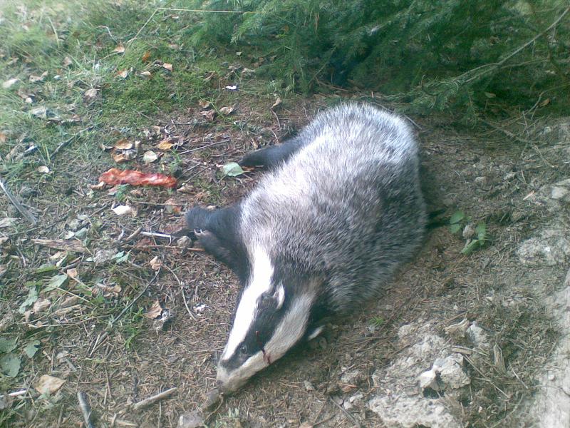 var uppe idag och stängde igen fällorna. men i en lillenbergsfälla satt det en grävlings hona på ca:10 kg  :D