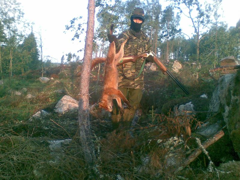 Publicerat Augusti 14, 200718 yr I går kväll smög vi ut. smög först runt och spanade av några åkrar. sedan smög vi och satte oss vid en nyslagen vall. får se en smaldjur och efter en stund kommer det en bock som springer runt smaldjuret. jaha, då helt plötsligt börjar grannen klippa gräset 200 meter bort. satan vad gräsklipparen låter högt men som tur är så slutar han efter en stund. och efter ett tag så står helt plötsligt en räv 100 meter bort. den smyger om kring där och letar sork. det blir bara mörkare och mörkare. nä nu får räven ta och komma hitåt tänker jag innan det blir för mörkt.skulle precis börja pipa som en mus då den börjar att röra sig åt mitt håll. jag gör mig berred med bössan. räven försvinner bakom en stor sten 20 meter bort, men plötsligt kommer den fram och när den är 10 meter från mig piper jag till så den stannar till och säsongens första räv ligger Äntligen framför bössan . En ung hona.