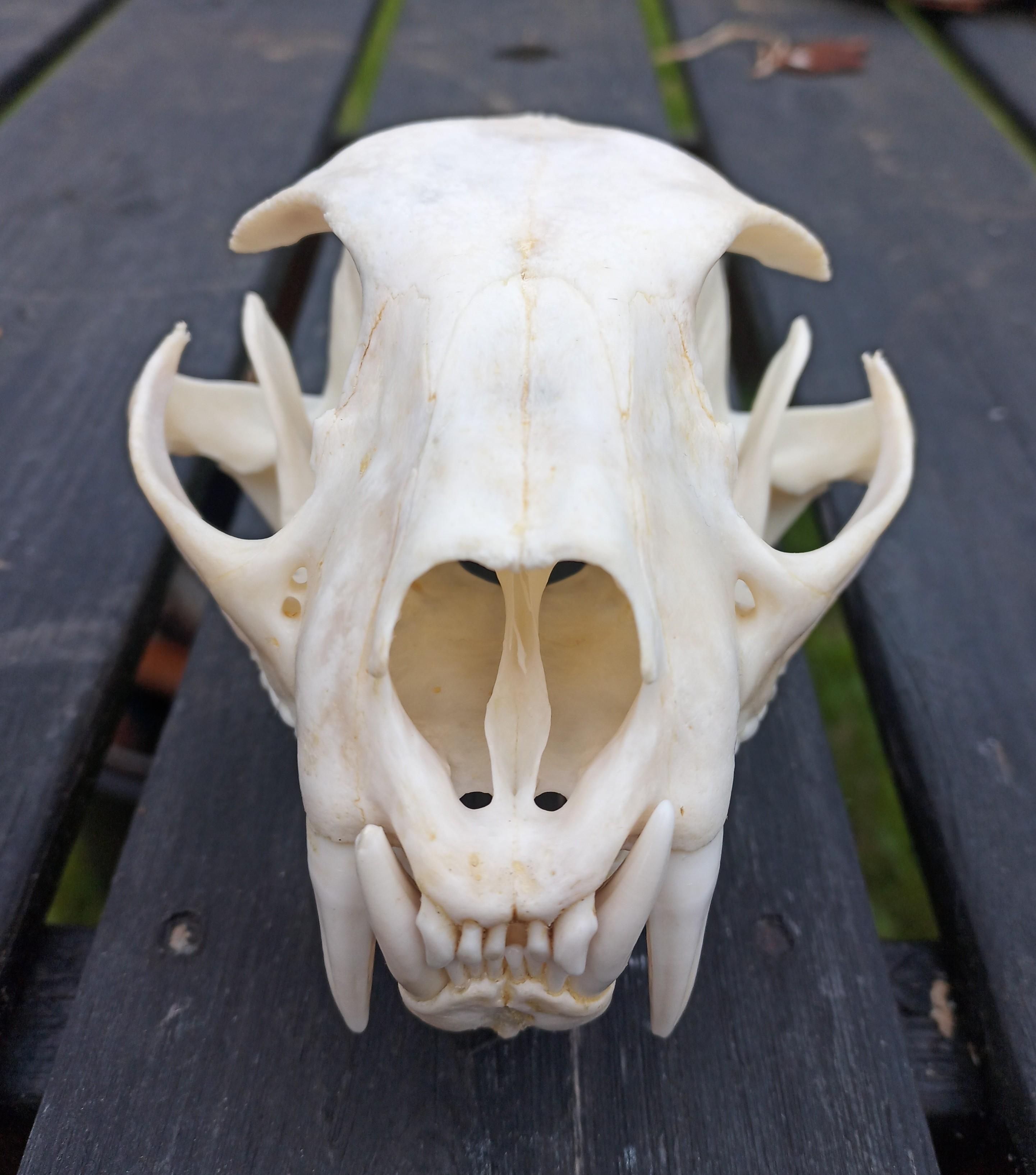 Publicerat Juni 9, 20232 yr Detta är en populär post. Hör väl inte till vanligheterna och göra klart en katt skalle. Men nog får man vara bitter åt dem som kokat för att ta lös tanden och såga den. Sen att dom söndrat tanden var ju allt lite onödigt. Vilket extra jobb det vart och helt bra blev det ändå inte. Blekt kraniumet flera gånger och ändå är det inte helt 100. Nå det var bra tyckte ägaren så då är det väl så. Men ifall dom kunniga hade kokat skallen tagit lös tanden sågat den och inte låtit kraniumet torka och bli äckligt hade det sparat mycket tid för mig och slut resultatet hade blivit bättre. Före bild efter bara kokning och sen efter blekning. katterna är fina djur och lite underligt dom finns här i skogen men när man ser käften så förstår man att det är jägare.